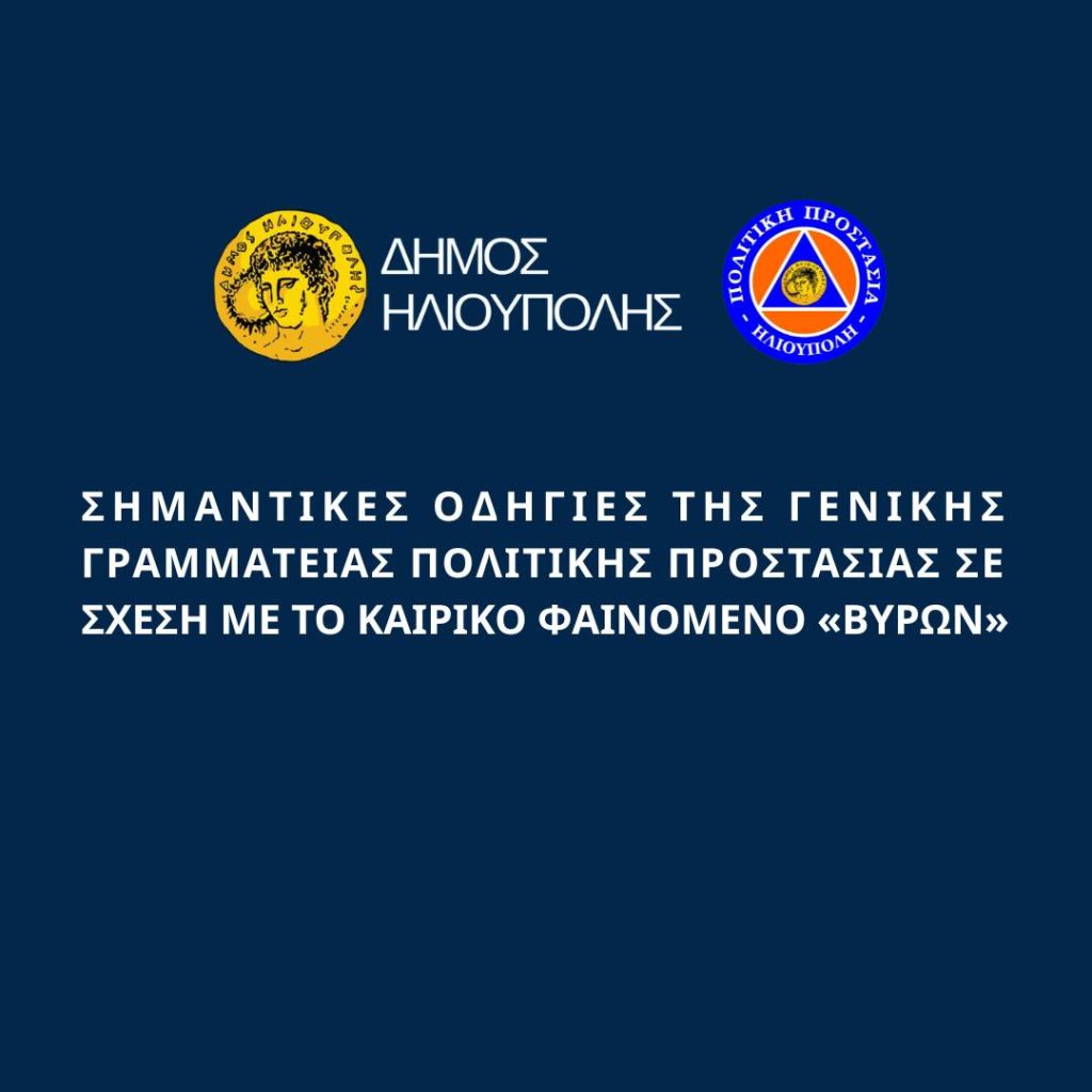 Σημαντικές οδηγίες της Γενικής Γραμματείας Πολιτικής Προστασίας σε σχέση με το καιρικό φαινόμενο «BΥΡΩΝ» από το Δήμο Ηλιούπολης