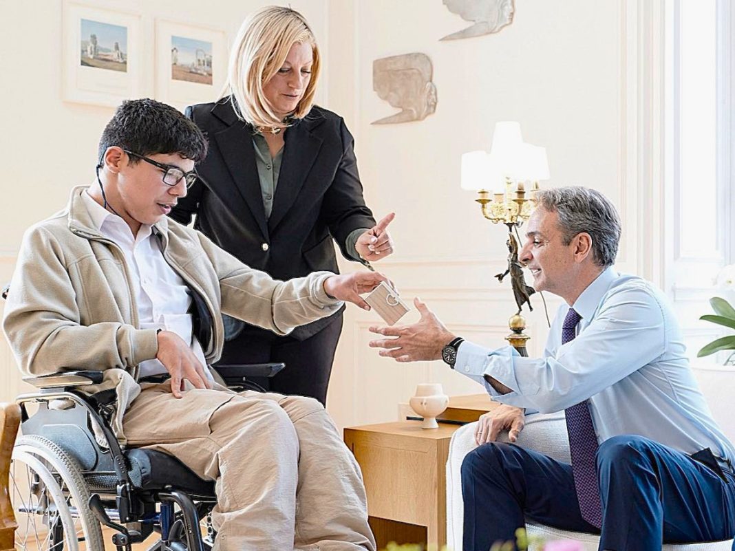 Ο Κυριάκος Μητσοτάκης συναντήθηκε χθες 2-4-2026 στο Μέγαρο Μαξίμου με τον μαθητή της Β’ Γυμνασίου του Ειδικού Γυμνασίου-Λυκείου Αθηνών Ηλιούπολης, Παναγιώτη.