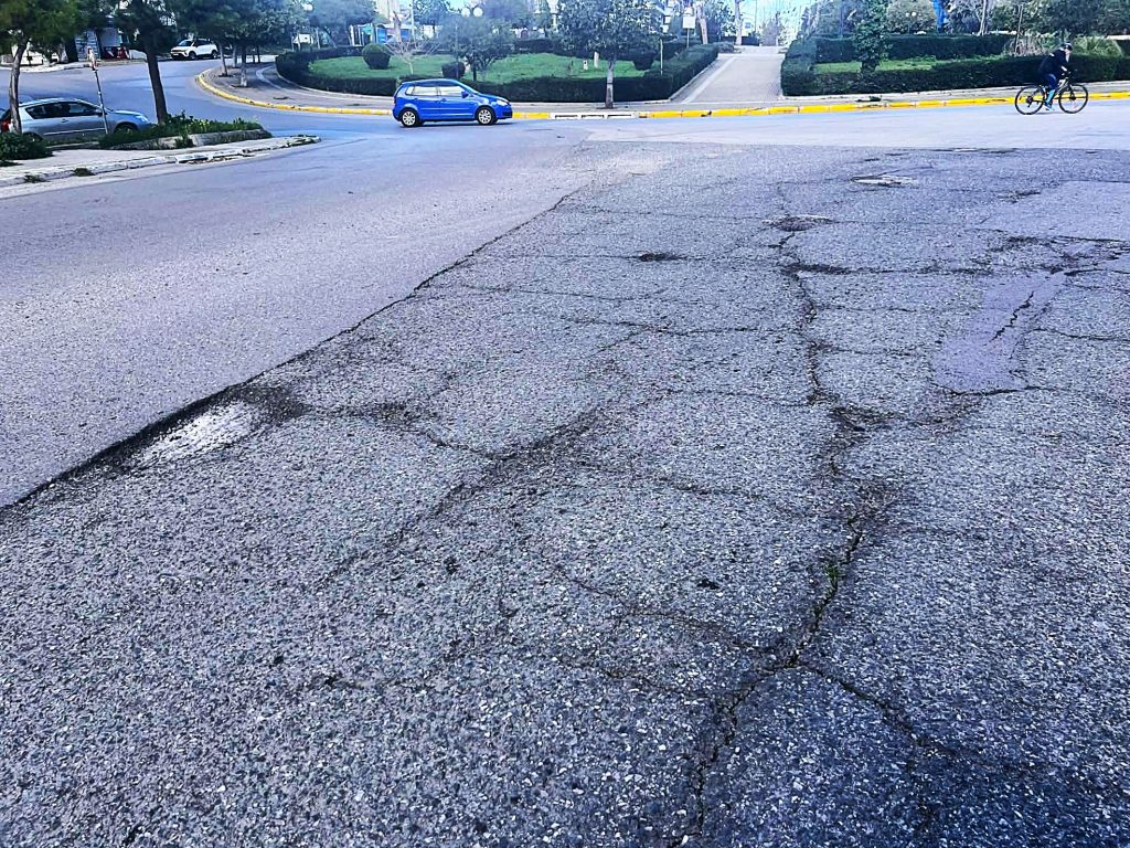 Κατεστραμμένη άσφαλτος από πρόωρη φθορά και από αλλεπάλληλες επεμβάσεις όλων των ειδών των εταιρειών, άτεχνα τελειώματα ασφαλτοστρώσεων και τρομακτικές λακούβες, μικρές και μεγάλες, κληρονομιά των βροχών αλλά και της αδιαφορίας και της αφροντισιάς, που αν πέσεις μέσα δεν ξαναβγαίνεις χωρίς ζημιά, φρεάτια ομβρίων-κανονικές παγίδες και ένα σωρό σημεία που δείχνουν ότι κάτι δεν πάει καλά σ΄ αυτή την πόλη.