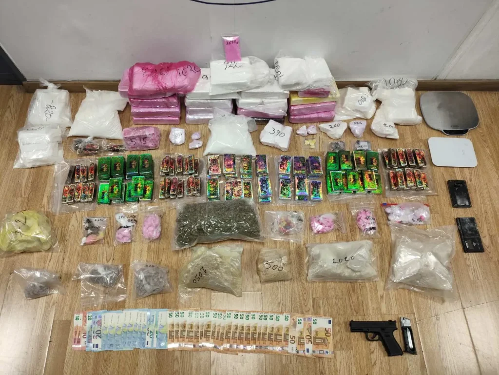 Κατασχέθηκαν πάνω από 26,5 κιλά κοκαΐνης, πάνω από 8 κιλά κατεργασμένης κάνναβης (σοκολάτα), 454 γραμμάρια ακατέργαστης κάνναβης, 24,6 γραμμάρια ροζ κοκαΐνης και πάνω από 4,5 κιλά MDMA