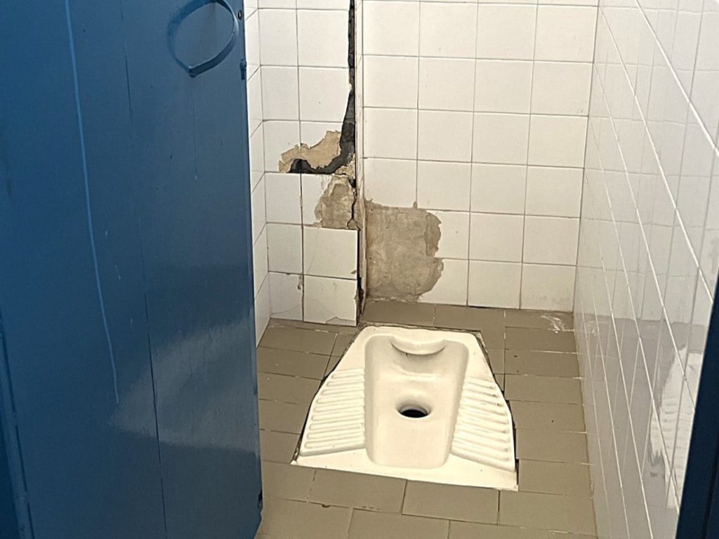 Πριν λίγες μέρες, μια άτυχη εκπαιδευτικός του ΕΠΑΛ, η κα Κ. Π. ενώ βρισκόταν στην τουαλέτα των εκπαιδευτικών του κτιρίου, δέχτηκε στο κεφάλι της πλακάκια που αποκολλήθηκαν από τον τοίχο.